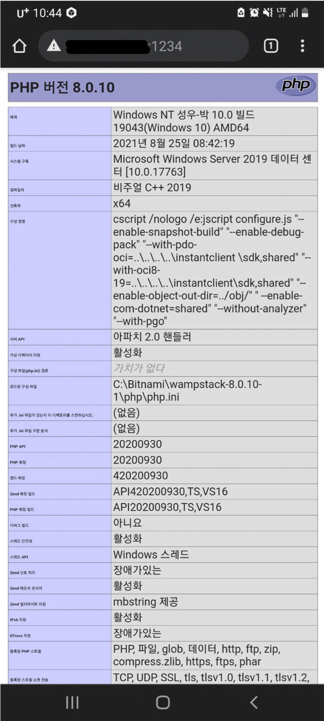 포트 포워딩 설정 후 휴대폰을 통해 Local 서버로 접속하였다.